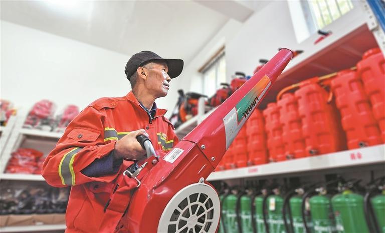 守護(hù)這片綠,防火是全年不能松的“弦”。園區(qū)的防火通道旁,紅色的滅火器箱沿路邊排放整齊。在森林防火物資儲(chǔ)備庫(kù)里,管護(hù)員趙金財(cái)一邊對(duì)設(shè)備進(jìn)行維護(hù),一邊說(shuō)道:“林子密了,一點(diǎn)火星都可能出大事。一到干燥季節(jié),我們每天要繞著園區(qū)走好幾圈,見(jiàn)著游客抽煙就上前宣教,遇到枯枝落葉也及時(shí)清走。這些樹(shù)長(zhǎng)了十幾年才這么粗,我們多上點(diǎn)心,才能守住這片綠。”