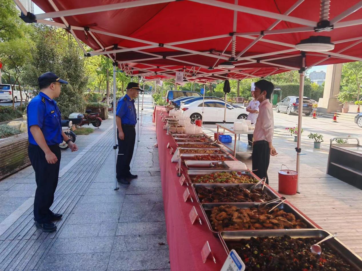 執(zhí)法隊結(jié)合轄區(qū)交通流量、人口密度及商業(yè)業(yè)態(tài)布局,開展專項調(diào)研評估,精準劃定外擺區(qū)域與臨時占道經(jīng)營點位:在小浹江菜場周邊,明確早市、晚市等居民消費集中時段允許規(guī)范經(jīng)營攤位外擺;在渡口南路餐飲聚集區(qū),支持商戶臨時占用劃定范圍內(nèi)的人行道擺放桌椅。此舉在便利居民日常生活的同時,有效拉動了夜間消費,讓轄區(qū)“煙火氣”愈發(fā)濃郁。
