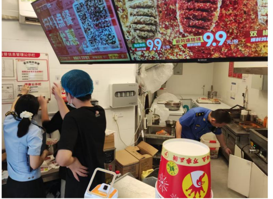 執(zhí)法隊督促商戶在加工區(qū)域安裝實時監(jiān)控設備,落實“明廚亮灶+互聯(lián)網(wǎng)”監(jiān)管模式。檢查中,執(zhí)法人員重點核查監(jiān)控覆蓋范圍、運行狀態(tài)及錄像保存時長,要求系統(tǒng)真實有效,確保消費者可通過平臺查看菜品制作過程。在經(jīng)營場所布局、食材儲存條件及加工流程方面,對衛(wèi)生不達標、操作不規(guī)范的商戶責令整改。