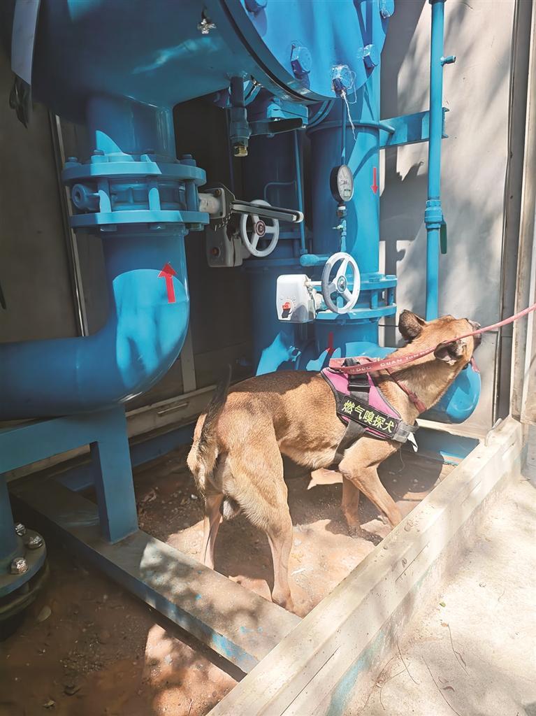 因訓(xùn)練的高度針對(duì)性,嗅探犬僅對(duì)四氫噻吩產(chǎn)生反應(yīng),可快速分辨天然氣與沼氣或其他氣體成分。在近期實(shí)戰(zhàn)中,公司借助嗅探犬對(duì)轄區(qū)內(nèi)部分商業(yè)綜合體、老舊小區(qū)等進(jìn)行試巡檢,歷時(shí)5天共完成38.26公里管線、322個(gè)閥門及66處調(diào)壓箱柜的巡查,有效檢測(cè)出隱蔽風(fēng)險(xiǎn)點(diǎn)34個(gè)。在下西園試點(diǎn)區(qū)域,它們僅用4小時(shí)就完成了傳統(tǒng)巡檢方式需一天覆蓋的范圍,工作效率得到顯著提升。