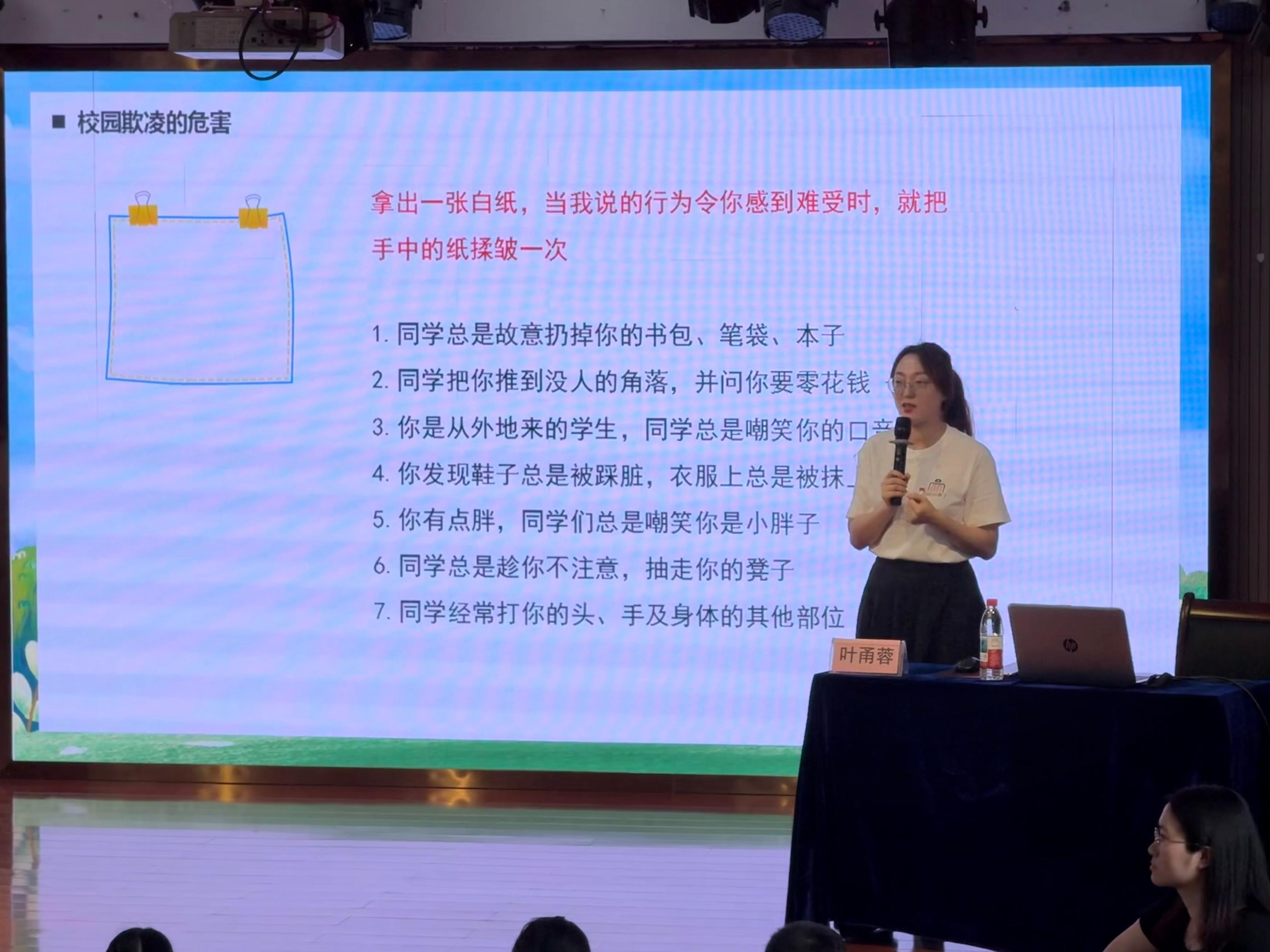 9月25日下午,鐘公廟中學420名師生也迎來了“平安第一課”。課程內容緊扣初中生身心特點,講師董黎娜重點剖析校園欺凌的表現形式與應對策略,同時結合季節(jié)特點強化防溺水教育,并針對當前高發(fā)的電信網絡詐騙進行預警提示,幫助學生筑牢思想防線。9月26日,志愿團又走進天童小學,為200余名小學生開展專題普法教育,講師葉甬蓉用通俗易懂的語言講解“什么是欺凌”“如何說不”,在孩子們心中播下法治與尊重的種子。