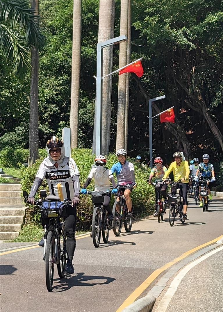 一組來(lái)自香港的騎行愛(ài)好者利用假期在淘金山綠道組隊(duì)騎行。