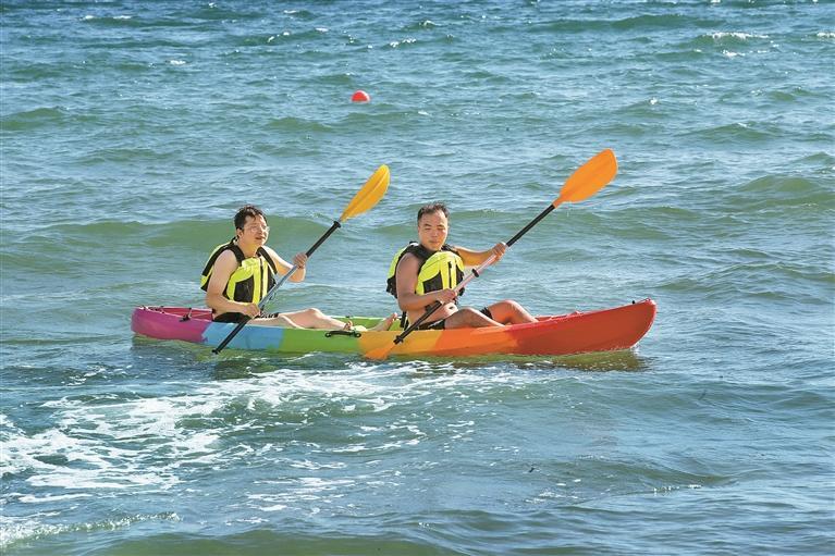 市民乘皮劃艇在海中劈波斬浪,盡享自由。