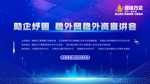 為貫徹全國穩(wěn)住經(jīng)濟(jì)大盤電視電話會議精神,落實《國務(wù)院辦公廳關(guān)于推動外貿(mào)保穩(wěn)提質(zhì)的意見》的政策部署,由國家外匯管理局江蘇省分局(以下簡稱“江蘇省外匯局”)、江蘇省銀行外匯和跨境人民幣業(yè)務(wù)自律機(jī)制(以下簡稱“江蘇自律機(jī)制”)、中國出口信用保險公司江蘇分公司主辦的“助企紓困,穩(wěn)外貿(mào)穩(wěn)外資”宣講活動于6月23日在常州舉辦,該場宣講活動由國家外匯管理局常州市中心支局協(xié)辦、中國銀行江蘇省分行(以下簡稱“江蘇中行”)承辦,近百名客戶現(xiàn)場參會。