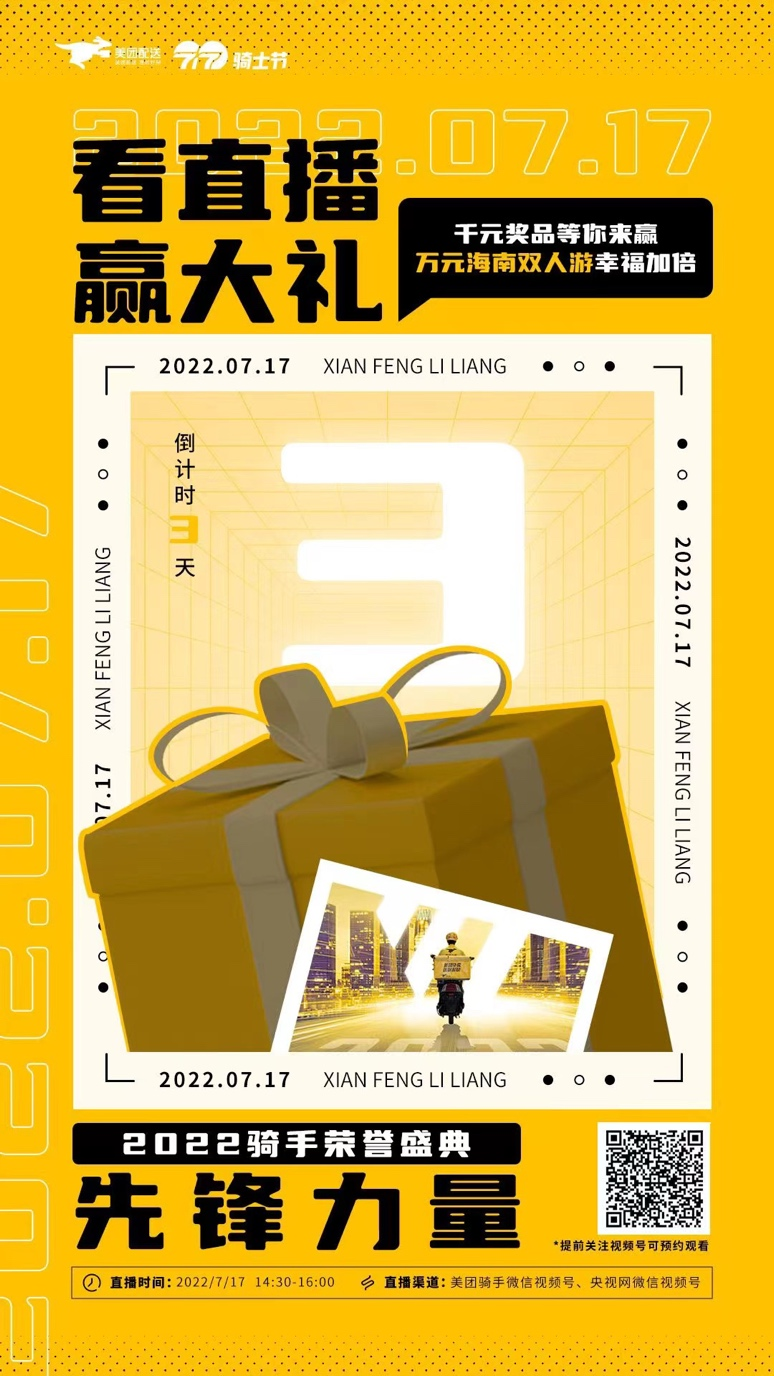 節(jié)日前夕,美團(tuán)配送也陸續(xù)推出豐富的專題活動(dòng),包括騎手家庭日、騎士節(jié)專屬禮品發(fā)放、站點(diǎn)聯(lián)歡活動(dòng)、騎手免費(fèi)理發(fā)專場等,讓廣大騎手過上富有職業(yè)認(rèn)同感和集體歸屬感的騎士節(jié)。7月17日當(dāng)天,“2022騎手榮譽(yù)盛典·先鋒力量”頒獎(jiǎng)典禮也將在央視網(wǎng)和美團(tuán)騎手視頻號(hào)同步直播。