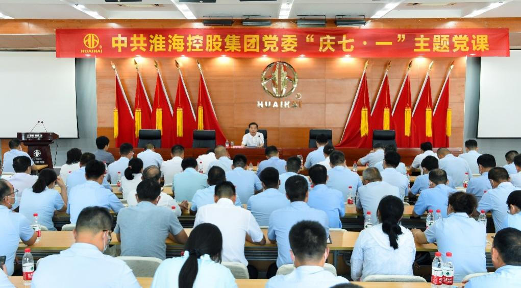 今年7月1日,是中國(guó)共產(chǎn)黨成立101周年。在淮??毓杉瘓F(tuán)(以下簡(jiǎn)稱(chēng)淮海集團(tuán)),鮮紅的黨旗和“我心永向黨”的海報(bào)隨處可見(jiàn),醒目的“共產(chǎn)黨員示范崗”紅色卡片放置在每一個(gè)共產(chǎn)黨員的工位上?!包h旗飄在工位上”是集團(tuán)黨建的一大特色,在集團(tuán)生產(chǎn)一線,一塊標(biāo)語(yǔ)牌格外引人注目——“黨建強(qiáng),企業(yè)才更強(qiáng)”。