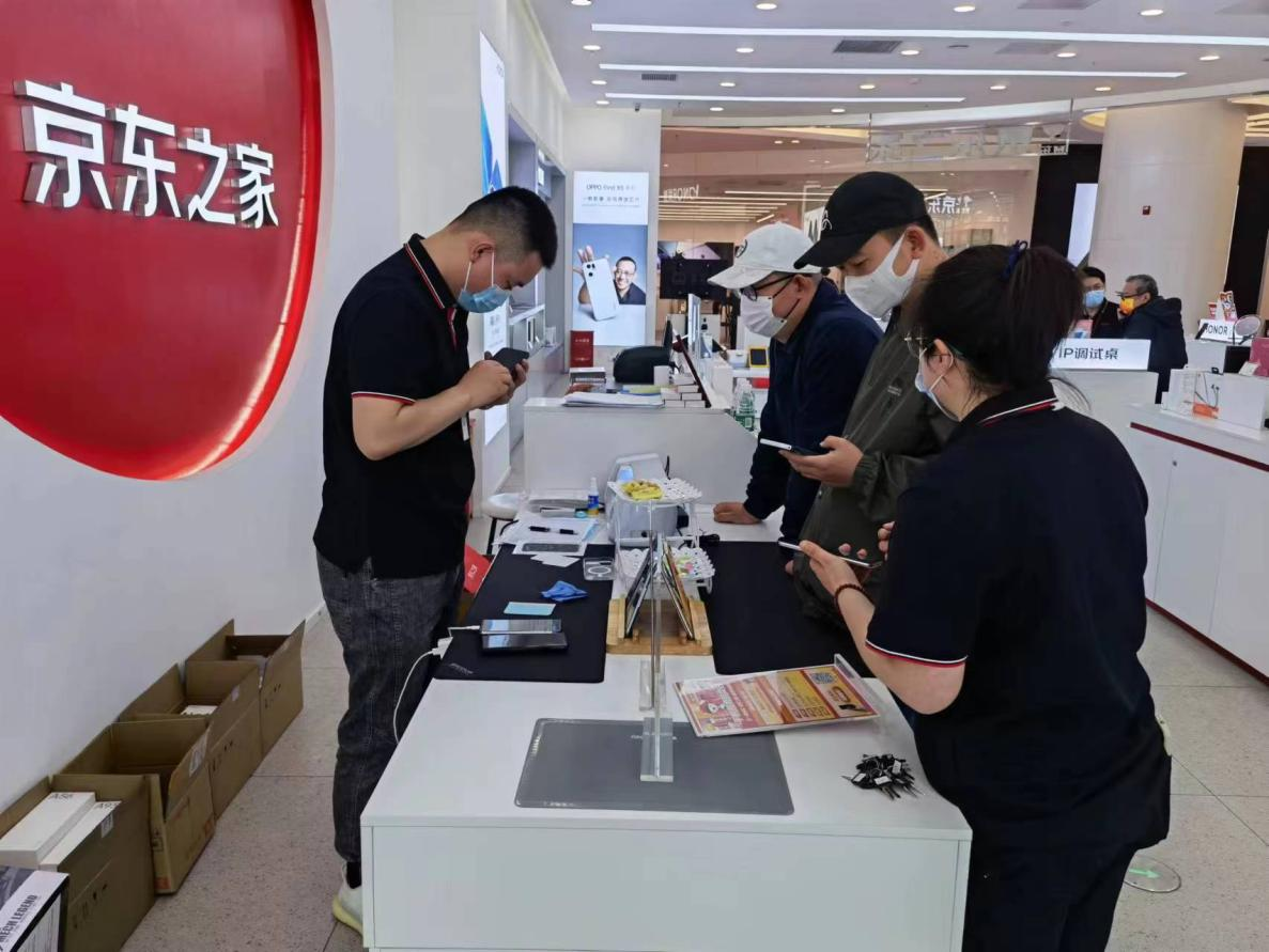 消費者在京東之家線下門店體驗手機以舊換新服務(wù)