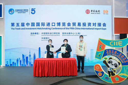 11月6日,第五屆進口博覽會貿(mào)易對接會剛剛開幕,江蘇中行客戶S集團即與日本三家跨國公司展商簽訂了合計約1.5億美元的合作意向。S集團高度評價中行的跨境金融服務,并強調(diào)未來將深入放大進博會平臺“溢出效用”,與境外展商持續(xù)加強信息交流與資源集成,打造雙贏、可持續(xù)發(fā)展的全面戰(zhàn)略合作伙伴關系,助力中國廠商不斷提升“智造”競爭力。