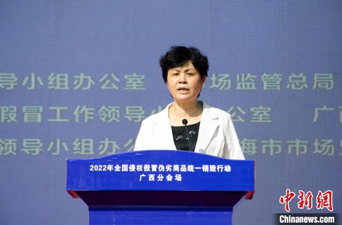 全國打擊侵權假冒工作領導小組辦公室主任、國家市場監(jiān)管總局副局長甘霖在北海參加銷毀活動并講話