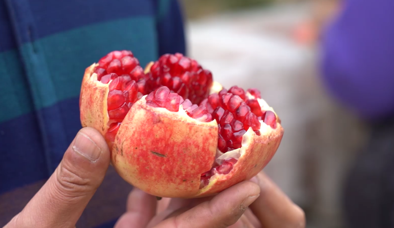 “河陰石榴哥”樊國(guó)鋒剛從樹(shù)上摘下來(lái)的石榴,籽粒飽滿(mǎn)。