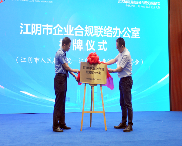 會(huì)上,江陰市人民檢察院四級(jí)高級(jí)檢察官陳衛(wèi)東、江陰市企業(yè)法治工作協(xié)會(huì)會(huì)長(zhǎng)蔡磊共同為“江陰市企業(yè)合規(guī)聯(lián)絡(luò)辦公室”揭牌。隨后,陳衛(wèi)東介紹了江陰市人民檢察院開(kāi)展企業(yè)合規(guī)工作的總體情況,包括檢察環(huán)節(jié)合規(guī)的定位、相關(guān)經(jīng)驗(yàn)做法以及取得的主要成效。
