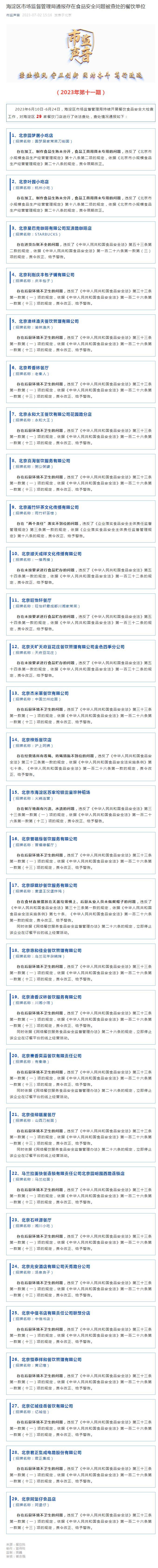 7月2日,北京市海淀區(qū)市場(chǎng)監(jiān)督管理局在其公眾號(hào)通報(bào)存在食品安全問題被查處的餐飲單位。6月10日-6月24日,海淀區(qū)市場(chǎng)監(jiān)督管理局持續(xù)開展餐飲食品安全大檢查工作,對(duì)海淀區(qū)29家餐飲門店進(jìn)行了依法查處。