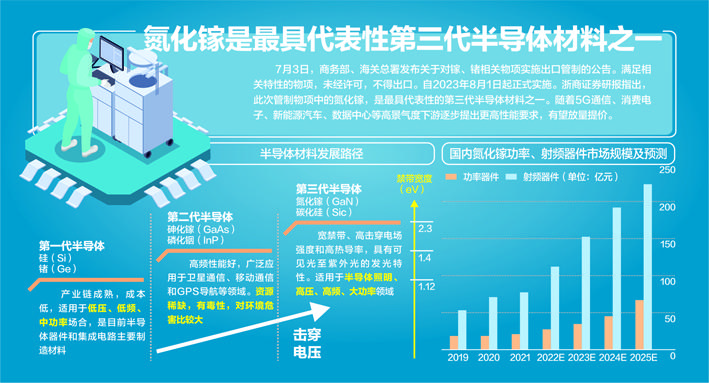 浙商證券的研報指出,氮化鎵(GaN)是最具代表性的第三代半導(dǎo)體材料之一,禁帶寬度達(dá)到3.4eV。更寬的禁帶寬度、更高的擊穿電場、更高的熱導(dǎo)率、更高的電子飽和速率及更優(yōu)的抗輻照能力,使得其在功率器件、射頻器件、光電器件領(lǐng)域大有作為。隨著5G通信、消費(fèi)電子、新能源汽車、數(shù)據(jù)中心等高景氣度下游逐步提出更高性能要求,有望放量提價。