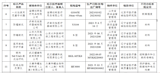 醫(yī)用射線防護(hù)用具3批次:分別為濟(jì)南優(yōu)佳醫(yī)療器械有限公司、山東大華醫(yī)特環(huán)保工程有限公司生產(chǎn),涉及材料不符合標(biāo)準(zhǔn)規(guī)定。