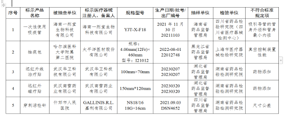 被抽檢項(xiàng)目不符合標(biāo)準(zhǔn)規(guī)定的產(chǎn)品包括呼吸道用吸引導(dǎo)管(吸痰管)2批次:分別為海南一劑堂生物科技有限公司、太平洋醫(yī)材股份有限公司生產(chǎn),涉及吸引導(dǎo)管的管身外徑和管身最小內(nèi)徑、真空控制裝置性能不符合標(biāo)準(zhǔn)規(guī)定。
