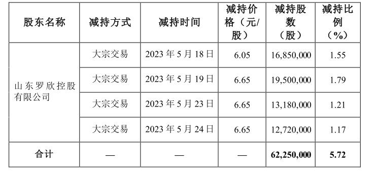 羅欣控股通過(guò)證券交易系統(tǒng)以大宗交易方式減持6225萬(wàn)股,共套現(xiàn)約4.04億元。