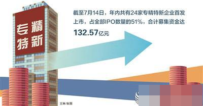 今年以來,資本市場(chǎng)持續(xù)健全服務(wù)科技創(chuàng)新的相關(guān)機(jī)制,尤其是在支持專精特新企業(yè)融資方面成效顯著。據(jù)Wind資訊數(shù)據(jù)統(tǒng)計(jì),截至7月14日,年內(nèi)共有24家專精特新企業(yè)首發(fā)上市,占全部IPO數(shù)量的51%,合計(jì)募集資金達(dá)132.57億元。