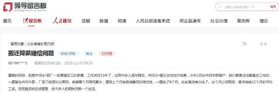 除了被撤銷高新技術(shù)企業(yè)資格之外,2023年11月27日,齊河永鋒鋼廠一名員工家屬在人民網(wǎng)“領(lǐng)導(dǎo)留言板”留言稱,永鋒鋼廠搬遷去臨沂臨港,今年3月份齊河本部停產(chǎn),“我們都是沒法跟著去工作的,一直留在齊河本部,廠里不給簽協(xié)議離職,就是每個月降低薪水,直到上個月按縣城最低標(biāo)準(zhǔn)發(fā)放,一直拖了8個月”,賠償卻要求按前12個月平均工資計算。