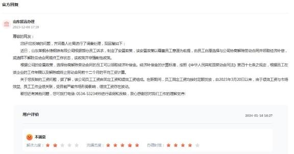 對此,名為“山東留言辦理”的ID號12月8日在該條留言下回復(fù)稱,齊河縣人社局進行了調(diào)查處理:近日,山東萊鋼永鋒鋼鐵有限公司根據(jù)部分員工訴求,制定了安置政策,該安置政策以尊重員工意愿為前提,由員工自愿選擇與公司協(xié)商解除勞動合同并領(lǐng)取經(jīng)濟補償,或選擇不解除勞動合同維持工作狀態(tài),該政策并非強制性政策。