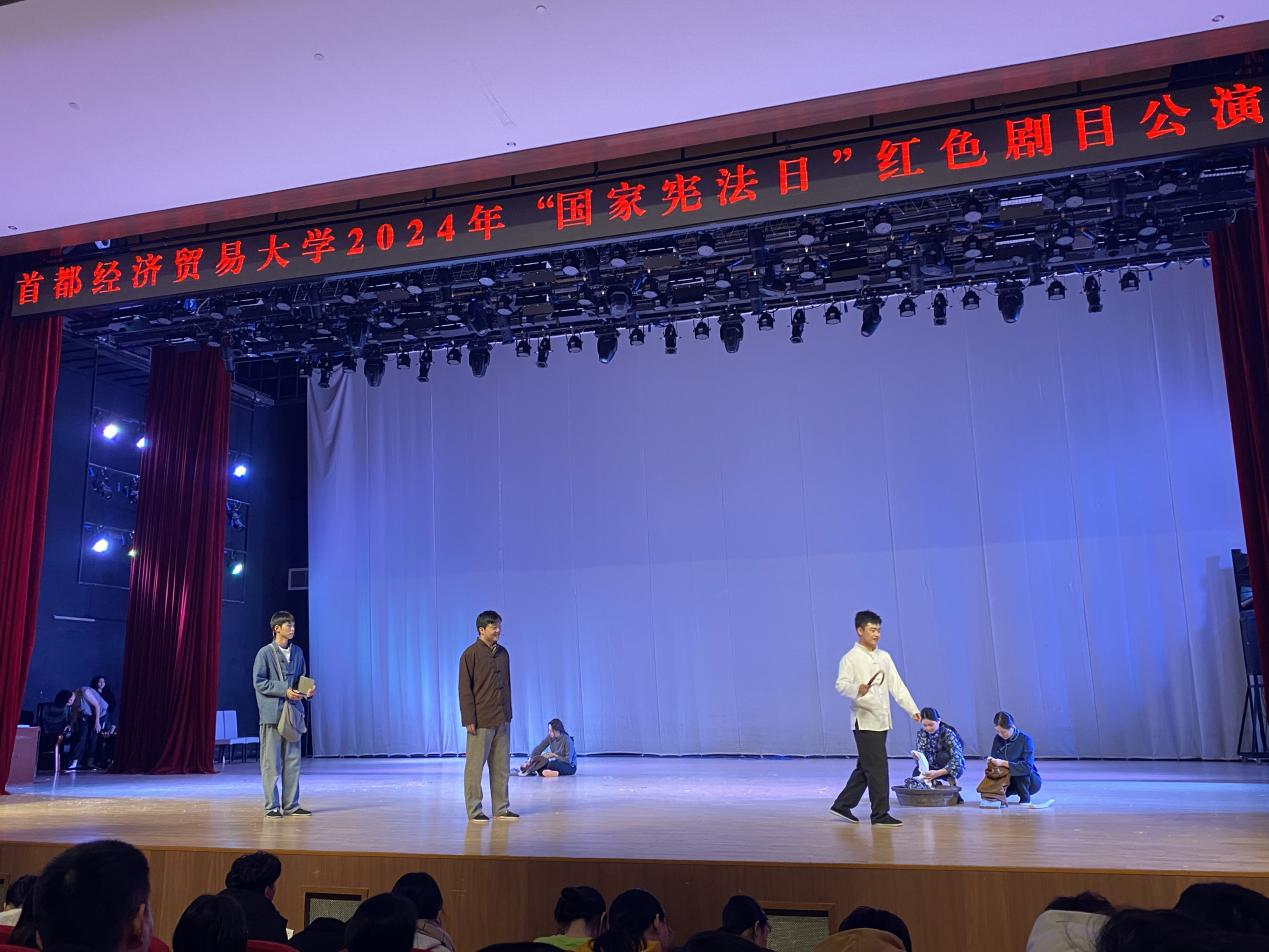 12月4日,我國迎來第十一個國家憲法日,首都經(jīng)濟貿(mào)易大學(xué)(下稱“首經(jīng)貿(mào)”)紅色普法劇目《面向群眾的審判》在琢玉講堂進(jìn)行了首場公演。
