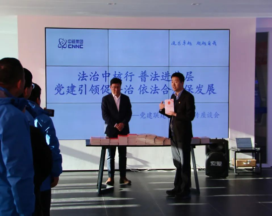 座談期間,與會單位以“黨建引領(lǐng)促法治、依法合規(guī)保發(fā)展”為主題舉辦了黨建聯(lián)建活動。中核集團以“堅持黨建引領(lǐng)下法治中核建設的創(chuàng)新與實踐”為題介紹了“黨建+法治”工作的開展情況,各單位交流了經(jīng)驗和后續(xù)工作計劃。