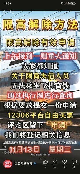 個別律所認證賬號發(fā)作品 稱提供解除“限高”服務(wù)
