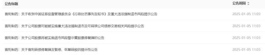 普利制藥也自2024年7月以來在相關(guān)立案調(diào)查事項進(jìn)展暨風(fēng)險提示公告、延期披露會計差錯更正后的專項鑒證或?qū)徲媹蟾娴奶崾拘怨妗⒐善苯灰桩惓2▌拥雀黜椆嬷谐掷m(xù)提示存在重大違法強(qiáng)制退市風(fēng)險,累計提示重大違法強(qiáng)制退市風(fēng)險已多達(dá)30多次。
