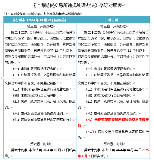 上海期貨交易所1月7日也發(fā)布公告稱,《上海期貨交易所結(jié)算管理辦法(修訂版)》《上海期貨交易所違規(guī)處理辦法(修訂版)》經(jīng)上期所理事會(huì)審議通過,并已報(bào)告中國(guó)證監(jiān)會(huì),現(xiàn)予以發(fā)布,自2025年1月7日起實(shí)施。