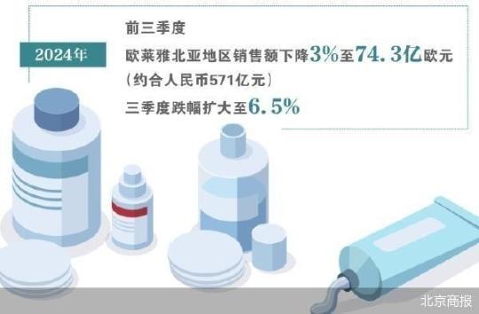 反觀歐萊雅整體業(yè)績,則難言樂觀。近兩年,歐萊雅增長放緩,尤其是曾支撐整體業(yè)績增長的亞洲市場及中國市場,出現(xiàn)多季度下滑。根據(jù)財報數(shù)據(jù),2024年前三季度,歐萊雅銷售額達324.06億歐元(約合人民幣2494.88億元),同比增長6%。其中,中國所在的北亞地區(qū)成為唯一銷售額下滑的市場。根據(jù)財報數(shù)據(jù),前三季度,歐萊雅北亞地區(qū)銷售額下降3%至74.3億歐元(約合人民幣571億元),三季度跌幅擴大至6.5%。2024年上半年,歐萊雅北亞市場銷售額54.75億歐元,同比下降3.1%。另外,二季度銷售額27.52億歐元,同比下降2.4%;而在一季度,歐萊雅北亞地區(qū)銷售額同比下降1.1%。
