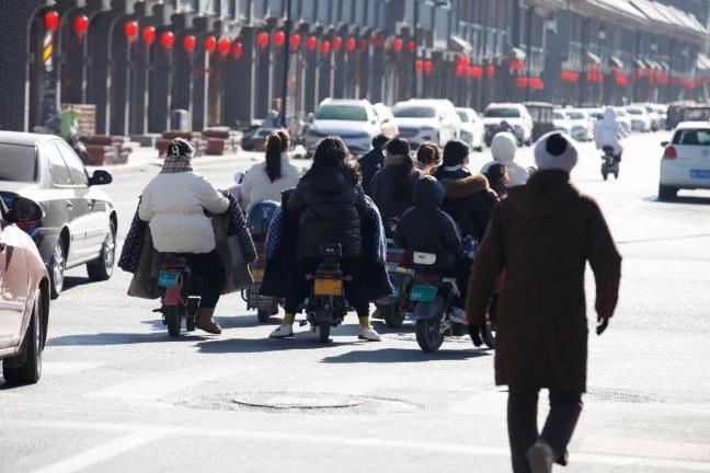 ▲1月15日,河南安陽(yáng)的市民騎著電動(dòng)自行車迎著寒風(fēng)出行。CFP