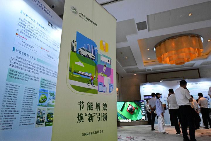 2025年6月23日,2025年全國節(jié)能宣傳周在山東青島啟動(dòng),人們在節(jié)能降碳展上參觀。新華社記者 李紫恒 攝