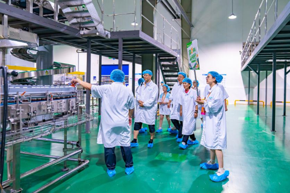 在生產(chǎn)車間,各類先進(jìn)生產(chǎn)線有序運(yùn)轉(zhuǎn),展現(xiàn)出現(xiàn)代化飲品生產(chǎn)的嚴(yán)謹(jǐn)與高效。工作人員詳細(xì)介紹了“潤家”飲料從原料生產(chǎn)、運(yùn)輸,到配方研發(fā)、灌裝生產(chǎn)的全流程品控環(huán)節(jié)。從優(yōu)質(zhì)原料的嚴(yán)格篩選,到運(yùn)輸過程中的保鮮措施,再到配方研發(fā)時對健康元素的精準(zhǔn)把控,以及超高溫滅菌黑科技、全程無菌灌裝、多道質(zhì)檢程序,每一個細(xì)節(jié)都體現(xiàn)著對飲品品質(zhì)的極致追求。
