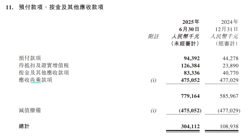 同樣是2025年半年報(bào)披露的數(shù)據(jù)顯示,復(fù)宏漢霖應(yīng)收尚乘款項(xiàng)為4.75億元, 減值撥備為4.75億元。