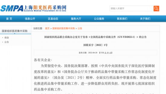 日前,國家組織藥品聯(lián)合采購辦公室發(fā)布《全國藥品集中采購文件(GY-YD2022-1)》公告,正式啟動第七批國家藥品集采工作,并擬定于7月12日開標。
