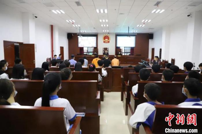 長順縣法院組織百余名師生現(xiàn)場觀摩一起電信“詐騙案件”。 貴州高院供圖