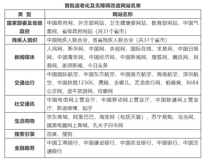 《方案》提出,開展互聯(lián)網(wǎng)主要行業(yè)網(wǎng)站適老化及無障礙改造。緊密結(jié)合老年人、殘疾人等群體的實(shí)際需求,對(duì)《工業(yè)和信息化部中國(guó)殘疾人聯(lián)合會(huì)關(guān)于推進(jìn)信息無障礙的指導(dǎo)意見》(工信部聯(lián)信管〔2020〕146號(hào))中提出的與老年人、殘疾人等群體工作、生活密切相關(guān)的公共服務(wù)類網(wǎng)站開展適老化及無障礙改造。首批優(yōu)先推動(dòng)國(guó)家相關(guān)部委及省級(jí)人民政府、殘疾人組織、新聞媒體、交通出行、金融服務(wù)、社交通訊、生活購(gòu)物、搜索引擎等8大類、共115家網(wǎng)站進(jìn)行改造。中國(guó)互聯(lián)網(wǎng)協(xié)會(huì)協(xié)助基礎(chǔ)電信企業(yè)及網(wǎng)站接入服務(wù)商加快互聯(lián)網(wǎng)無障礙服務(wù)體系建設(shè),持續(xù)推動(dòng)互聯(lián)網(wǎng)信息無障礙環(huán)境建設(shè)健康發(fā)展。