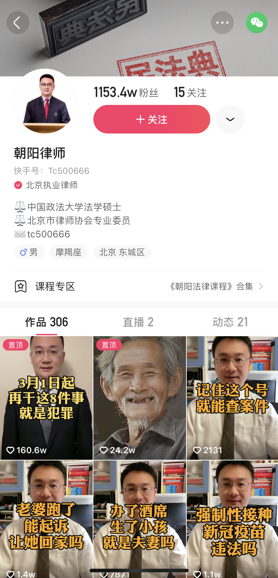 2016年,短視頻剛剛興起,楊朝陽也是在這時無意接觸到了快手。在覺得“好玩”的同時,律師的職業(yè)敏感性讓他捕捉到一個信息:當(dāng)時平臺上娛樂性內(nèi)容較多,法律板塊則是一片空白?!斑@么好的一個平臺,為什么不通過它給大家普法,給大家答疑解惑呢?這樣的話應(yīng)該能夠幫助更多的人?!庇谑?,他嘗試著錄了第一個視頻。