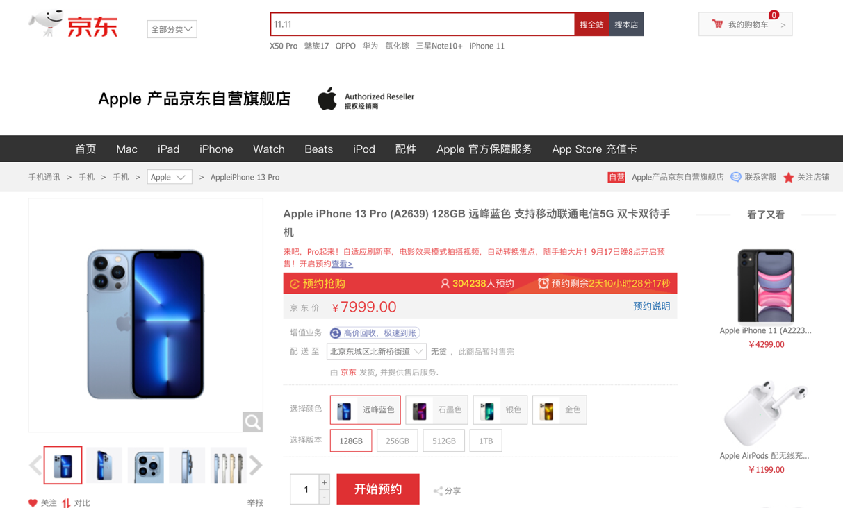 9月15日凌晨1點(diǎn),Apple秋季發(fā)布會(huì)正式召開,帶來了iPhone 13系列、Apple Watch Series 7、新款iPad、新款iPad mini等新品。其中備受果粉期待的iPhone13系列憑借優(yōu)秀的性能受到大家青睞。據(jù)了解,今早京東頁面上線后,僅1小時(shí),iPhone13系列預(yù)約人數(shù)已突破20萬。