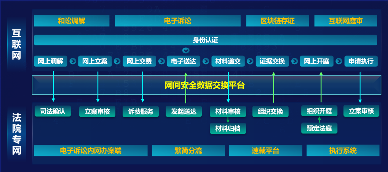 成都互聯(lián)網(wǎng)法庭響應“科技強國、智慧社會”目標,順應新發(fā)展理念,在夯實信息化基礎網(wǎng)絡的基礎上,充分借助現(xiàn)代科技手段,推進人民法院審判體系和審判能力現(xiàn)代化,本著“便民、高效、科技、多元、服務”的理念,充分利用5G、區(qū)塊鏈、云計算、大數(shù)據(jù)、人工智能等技術,以科技跨越時空壁壘,著力打造“云系列”新一代智慧審理和司法服務平臺。其中,包括云游多元解紛平臺、云享訴訟服務平臺、云端信用電子平臺、云輯審判管理平臺。從而實現(xiàn)當事人通過輸入存證編碼,實現(xiàn)證據(jù)高效一鍵調(diào)取,通過實名認證、電子簽名、時間戳技術形成證據(jù),最終在調(diào)解、仲裁、訴訟、司法確認等場景調(diào)取使用等效果。
