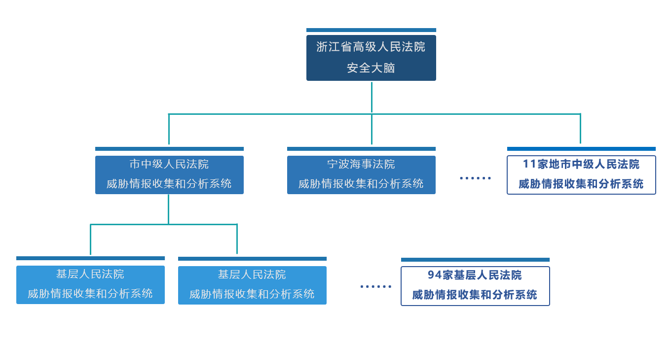 為了給“全域數(shù)字法院”構(gòu)筑全局、主動的網(wǎng)絡(luò)安全體系化防護,保障數(shù)字化改革的順利推進,浙江高院聚焦法院網(wǎng)絡(luò)基礎(chǔ)設(shè)施和信息系統(tǒng)建設(shè)、運行、維護、使用的安全管理,進一步強化制度建設(shè),出臺《浙江法院網(wǎng)絡(luò)安全管理辦法(試行)》及相關(guān)技術(shù)規(guī)范,建立健全了網(wǎng)絡(luò)安全測評、應急處置、檢查通報等機制。同時,沿著“架構(gòu)安全——被動防御——積極防御——威脅情報”的建設(shè)路徑,浙江高院依托威脅情報和大數(shù)據(jù)技術(shù),開展了安全大腦的建設(shè),形成了初級威脅可防御、高級威脅可監(jiān)測的動態(tài)安全能力,并兼顧防御、檢測、響應和預防四個方面,安全能力有了質(zhì)的飛躍。