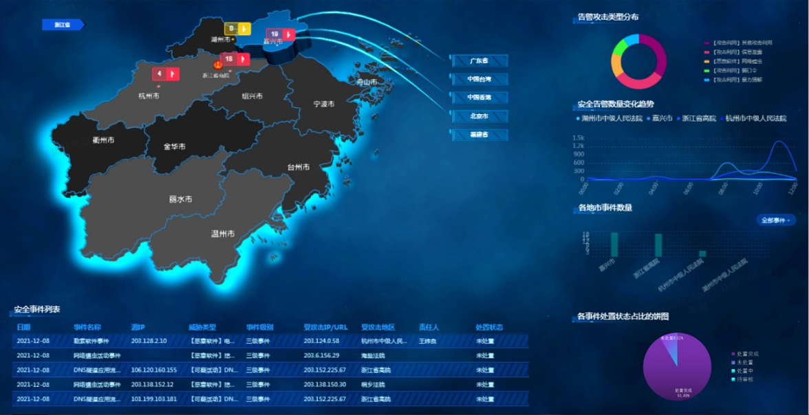 2021年,在省網(wǎng)信辦、公安廳牽頭的攻防實戰(zhàn)演習中,浙江高院不僅確保了防守目標“零失陷”,在及早發(fā)現(xiàn)攻擊行為、快速溯源分析、及時響應處置等主動防御層面也有較好表現(xiàn)。