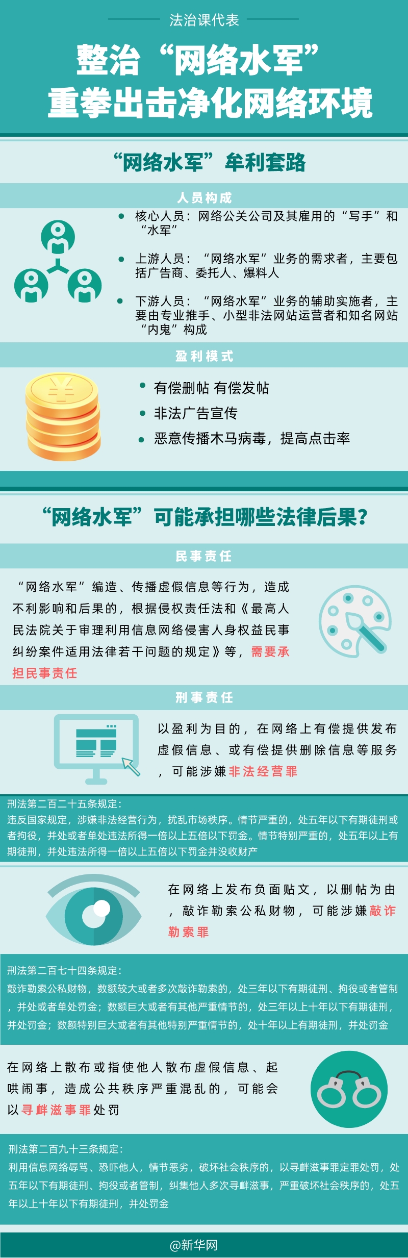 6月27日,公安部網(wǎng)安局在全國范圍內(nèi)啟動為期6個月的依法打擊整治“網(wǎng)絡水軍”專項工作?!熬W(wǎng)絡水軍”的牟利套路有哪些?可能承擔哪些法律后果?一圖帶你了解一下!