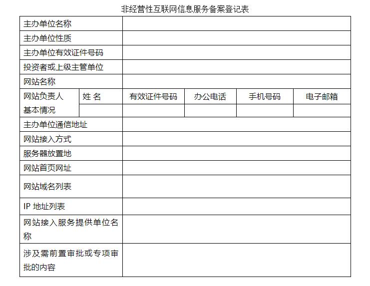 第七條 擬從事非經(jīng)營性互聯(lián)網(wǎng)信息服務(wù)的,應(yīng)當(dāng)通過信息產(chǎn)業(yè)部備案管理系統(tǒng)如實(shí)填報(bào)《非經(jīng)營性互聯(lián)網(wǎng)信息服務(wù)備案登記表》(以下簡稱 “ 《備案登記表》 ” ,格式見本辦法附錄),履行備案手續(xù)。