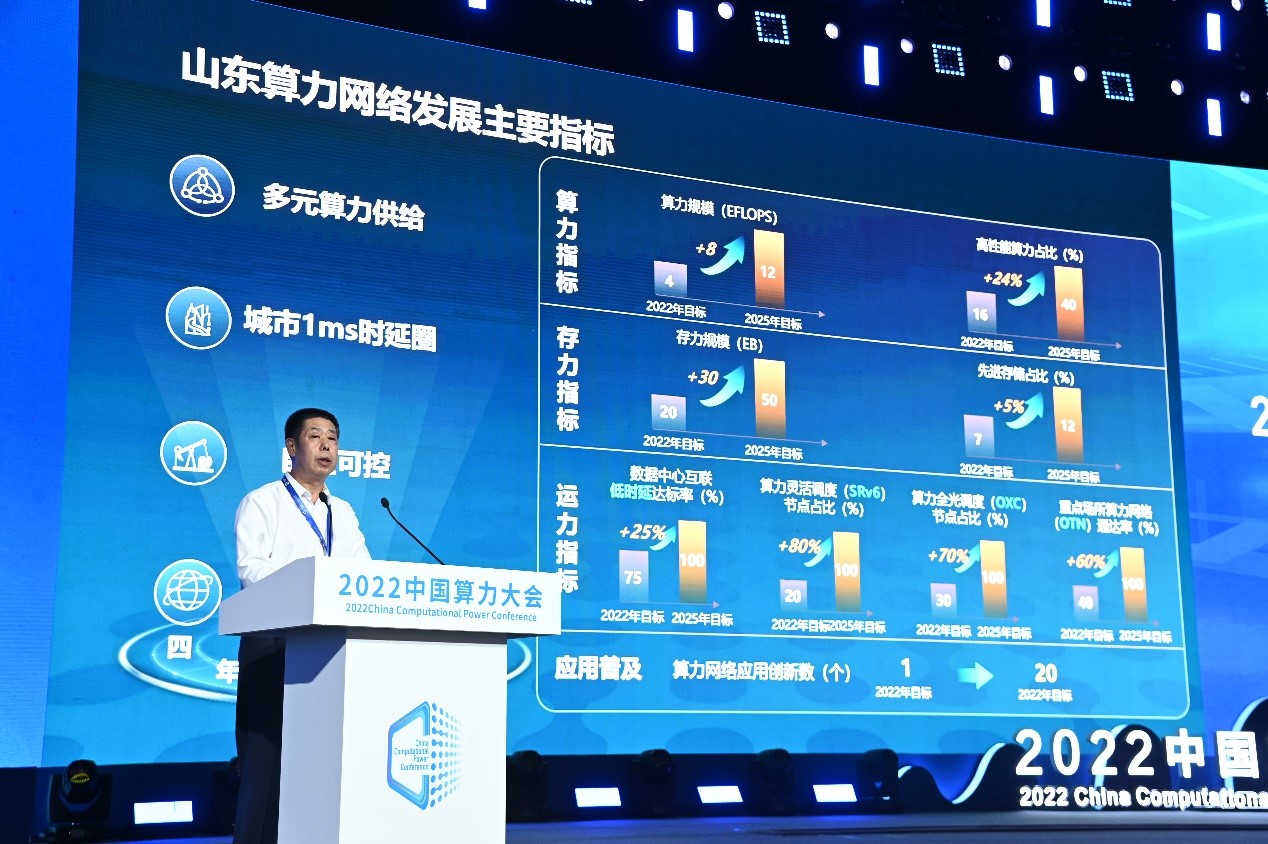 據(jù)山東省通信管理局張洪溢局長介紹,《山東一體化算力網(wǎng)絡(luò)建設(shè)行動(dòng)方案(2022-2025年)》明確了4項(xiàng)具體目標(biāo):算力供給均衡合理、存力保障安全可靠、運(yùn)力網(wǎng)絡(luò)優(yōu)質(zhì)互聯(lián)、算力網(wǎng)絡(luò)應(yīng)用創(chuàng)新。一是穩(wěn)步提升全省算力規(guī)模,2025年全省數(shù)據(jù)中心總算力超過12EFLOPS,高性能算力占比達(dá)到40%,國產(chǎn)化算力達(dá)到90%;二是系統(tǒng)構(gòu)建存力基礎(chǔ)設(shè)施,2025年存力規(guī)模達(dá)到50EB,先進(jìn)存儲(chǔ)占比12%;三是持續(xù)夯實(shí)運(yùn)力聯(lián)接底座,到2025年,全面構(gòu)建省會(huì)經(jīng)濟(jì)圈、膠東經(jīng)濟(jì)圈、魯南經(jīng)濟(jì)圈3毫秒時(shí)延圈,16地市1毫秒時(shí)延圈,全省數(shù)據(jù)中心、核心傳輸站點(diǎn)實(shí)現(xiàn)SRv6核心路由器、全光交換(OXC)傳輸設(shè)備全覆蓋,商務(wù)樓宇和產(chǎn)業(yè)園區(qū)實(shí)現(xiàn)OTN光接入終端全覆蓋;四是深化推動(dòng)算力網(wǎng)絡(luò)應(yīng)用創(chuàng)新,結(jié)合省內(nèi)產(chǎn)業(yè)特點(diǎn),到2025年打造20個(gè)可規(guī)模復(fù)制的算力網(wǎng)絡(luò)標(biāo)桿應(yīng)用。