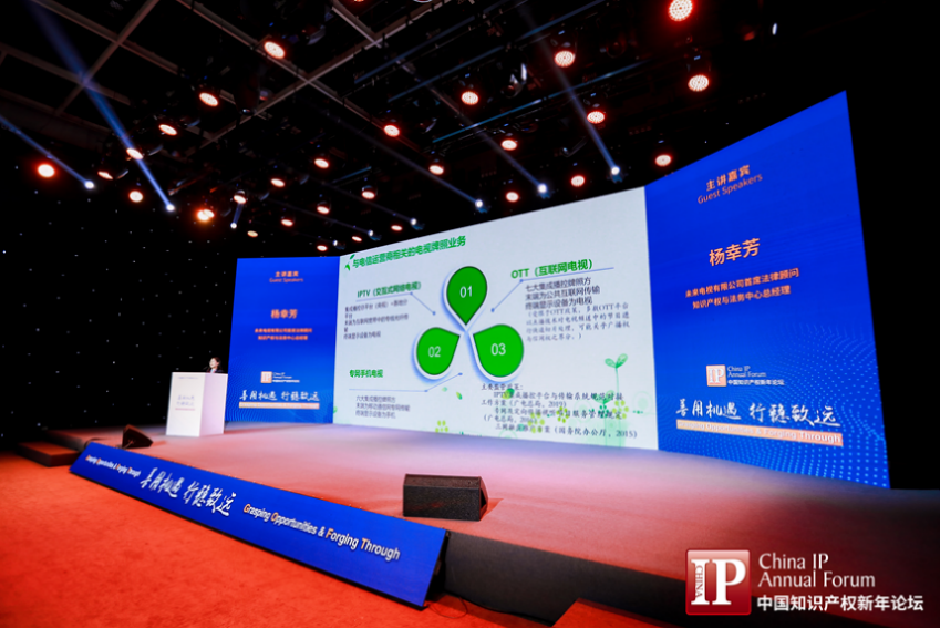 隨著電信網(wǎng)、計算機互聯(lián)網(wǎng)和有線電視網(wǎng)“三網(wǎng)融合”的深入推進,電視轉(zhuǎn)播行業(yè)獲得了長足的發(fā)展,也引發(fā)了眾多涉“三網(wǎng)融合”的著作權(quán)侵權(quán)糾紛。如何結(jié)合技術(shù)發(fā)展對電視轉(zhuǎn)播行為中的相關(guān)主體進行準(zhǔn)確的法律定性?怎樣統(tǒng)一相關(guān)訴訟案件中的司法裁判標(biāo)準(zhǔn)和尺度?這些都是值得探討的問題。近日,未來電視有限公司首席法律顧問、知識產(chǎn)權(quán)與法務(wù)中心總經(jīng)理楊幸芳在由《中國知識產(chǎn)權(quán)》雜志主辦的“第十三屆中國知識產(chǎn)權(quán)新年論壇暨2023中國知識產(chǎn)權(quán)經(jīng)理人年會”上,以“電視牌照業(yè)務(wù)中電信運營商的法律責(zé)任辨析”為主題作了演講,圍繞電視牌照業(yè)務(wù)、電信運營商、司法裁判、責(zé)任認(rèn)定等關(guān)鍵詞,分析了“三網(wǎng)融合”政策在電信運營商涉著作權(quán)法律責(zé)任判定中的考量。