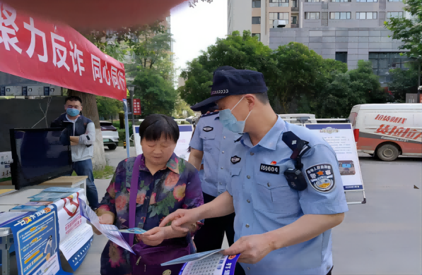 為有效遏制電信網(wǎng)絡(luò)詐騙違法犯罪,近日,陜西省西安市公安局蓮湖分局土門派出所社區(qū)民警走進(jìn)商戶、企業(yè)開展反詐宣傳活動(dòng)。(王拓)