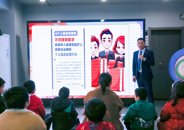 圖為律師為家長(zhǎng)和學(xué)生解讀《未成年人網(wǎng)絡(luò)保護(hù)條例》。