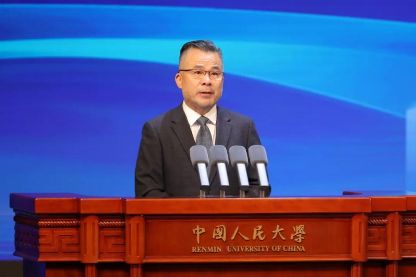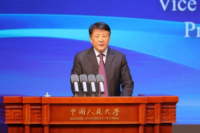 圖為中國(guó)人民大學(xué)黨委書記張東剛在開(kāi)幕式致辭。