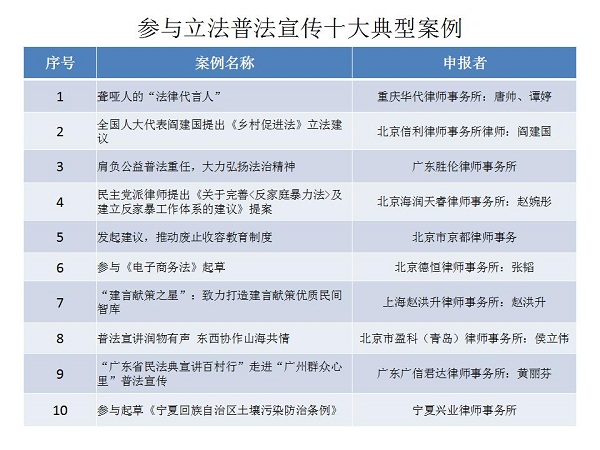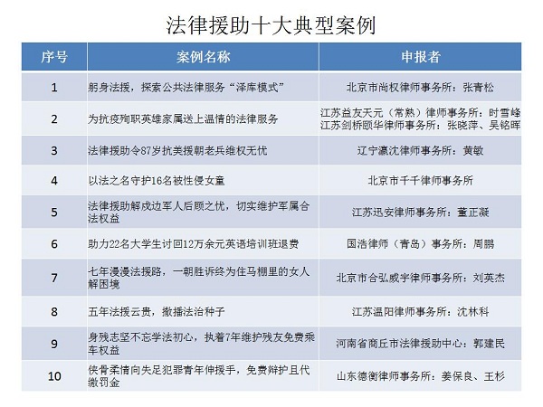 結(jié)合公眾投票和專家評審,十大律師公益類別最終產(chǎn)生了一百個典型案例,一百個提名案例。