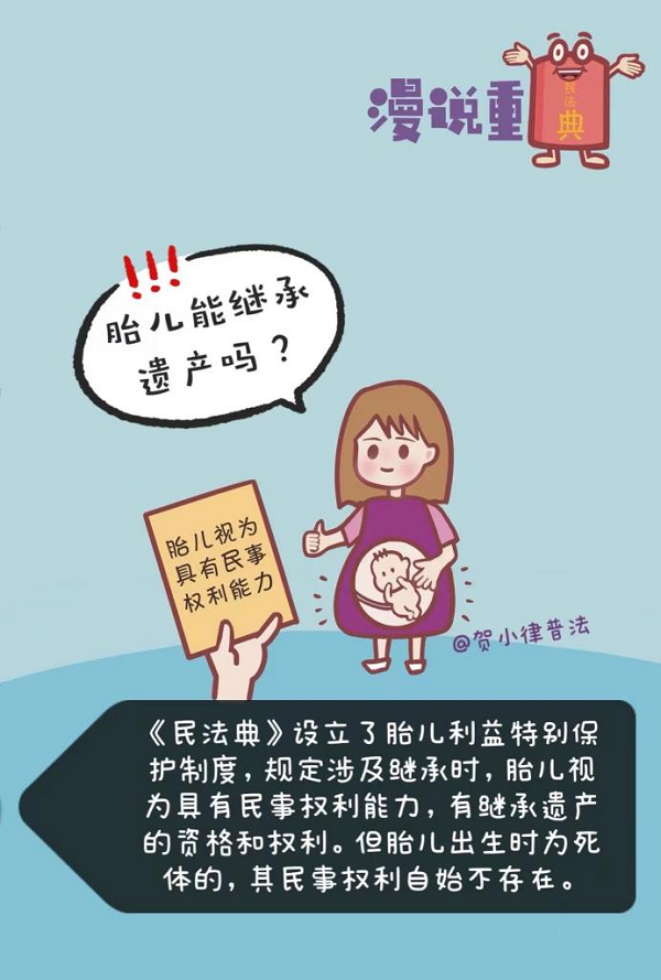 《中華人民共和國民法典》第十六條 【胎兒利益保護(hù)】涉及遺產(chǎn)繼承、接受贈與等胎兒利益保護(hù)的,胎兒視為具有民事權(quán)利能力。但是,胎兒娩出時為死體的,其民事權(quán)利能力自始不存在。